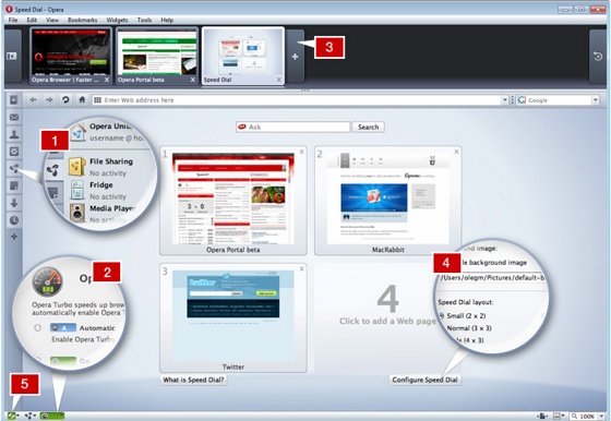 1. Opera Unite - простые в использовании приложения для обмена данными с другими пользователями.