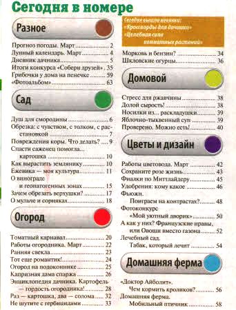 В журнале предложено множество советов, посвященных самым разным аспектам садоводства и огородничества. Как поливать, как проводить обрезку деревьев, как избавиться от вредителей-насекомых, как определить тип почвы, приготовить почву для рассады – журнал отвечает на всевозможные вопросы, с которыми сталкиваются садоводы и огородники.