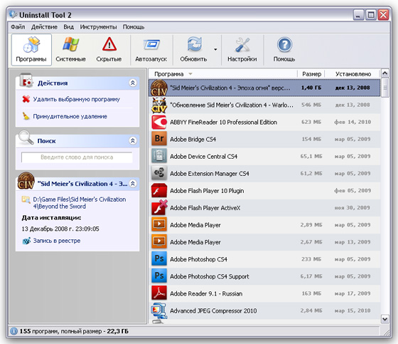 • Просмотр детальной информации о любой программе, установленной на вашем компьютере