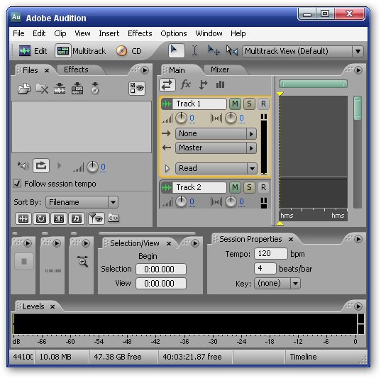Мощный звуковой редактор для микширования, редактирования, создания мастер-копий и обработки аудиоэффектов. Поддерживается совмещенная работа с видео файлами. Можно просматривать фрагменты видеоролика в окне Multitrack View и работать с видео файлами в различных форматах, включая AVI, MPEG, Native Digital Video (DV) и Windows Media Video (WMV). Adobe Audition поддерживает более 20 популярных аудио форматов. Имеются встроенные средства записи компакт-дисков и всевозможные аудиоэффекты, гибкие и точные средства редактирования и предварительного прослушивания. Имеется огромная коллекция (насчитывается более 5000 фрагментов в различных жанрах) закольцованных музыкальных фрагментов (loop). Adobe Audition позволяет пользователям редактировать отдельные аудио файлы, создавать циклы, импортировать более 45 эффектов и микшировать до 128 дорожек.
