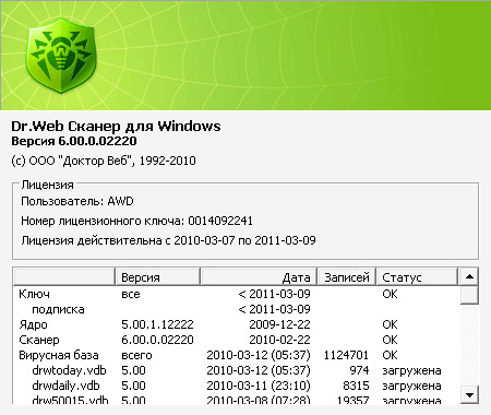 3) Те кто пользуются, поясните, а у dr. web ключи тоже банятся, как у каспера? Т.е. если поставить активацию как на скрине, до 2011-03-09, то есть вероятность что ключ забанят?