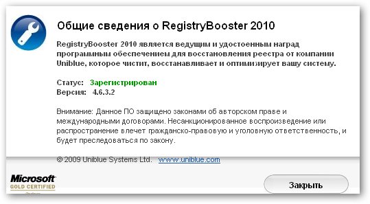 Скачать программу RegistryBooster 2010 v4.6.3.2 Rus (3,79 МБ):