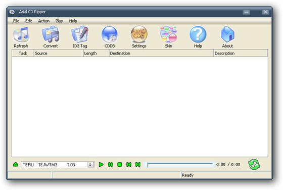 Arial CD Ripper - удобный инструмент для снятия треков с компакт-дисков и записи их на жесткий диск в виде MP3, WAV, OGG, FLAC, APE файлов, также программа позволяет "перегонять" музыку из формата в формат. Поддерживается работа с CDDB.