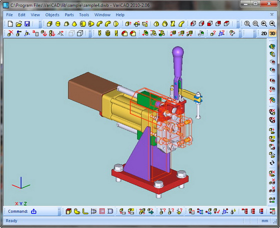 VariCAD 2010 - мульти-платформенная 2D/3D CAD программа для моделирования различных графических объектов. В этой программе пользователь может выбирать между панелями пиктограмм или выпадающими меню. Программа может импортировать и экспортировать как DXF так и IGES. Вы можете выдавливать и вращать 2D геометрию, чтобы получить трехмерные тела. Другие типы твердых тел: призмы, цилиндры, усеченные пирамиды, усеченные конусы, конические трубы, спирали. В дополнение к стандартным булевым операциям объединение и вычитания, вы получаете инструмент вырезания и сохранения, сохранения детали, вырезка сохраненной детали и инструмента, и добавление вырезанной части.