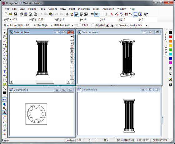 DesignCAD 3D Max - программа, которая сочетает в себе легкое в понимании и использовании 2D черчение с мощным и точным 3D моделированием для достижения потрясающих результатов в зависимости от вашего воображения и креативности. Дизайн никогда не был таким легким, как с использованием легкого в понимании интерфейса программы и обширной справочной библиотеки. Программа позволяет вам быстро создавать нужные чертежи. Также в программе имеется возможность твердотельного моделирования и создания анимации и презентаций. DesignCAD 3D Max является универсальным инструментом САПР для начинающих и продвинутых пользователей.