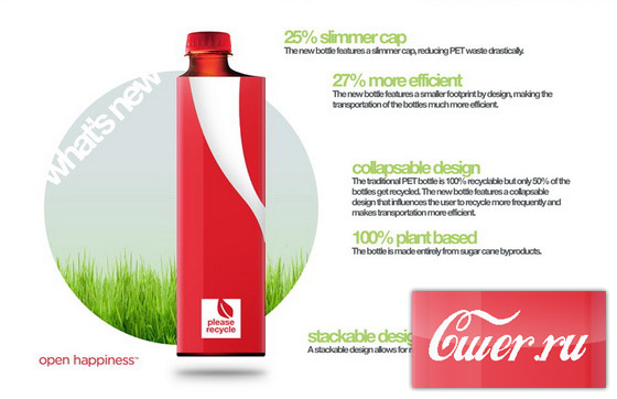 Другая интересная дизайнерская находка — бутылка имеет ребристость, которая позволяет после употребления напитка ее сжать как гармошку, так что при последующей утилизации она займет минимум места.