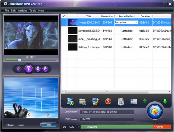 Joboshare DVD Creator is almost an one-click DVD movie creator, DVD maker, DVD converter, and DVD burner. It can convert popular video formats such as AVI, WMV, ASF, DivX, Xvid, 3GP, MP4, MPEG to DVD video files (.vob) and burn DVD movie, which is playable on the home DVD player.Joboshare DVD Creator allows you to specify NTSC or PAL format, adjust video aspect (4:3 or 16:9), and either burn DVD movie disc or ISO file. The DVD Creator also has some other advanced features, such as adding and editing DVD menus, trimming video, adding chapters, skipping menus, selecting zoom method, etc, which will help you create customized DVD disc. Joboshare DVD Creator supports all kinds of popular DVD discs including DVD-R, DVD+R, DVD-RW, DVD+RW, DVD-R DL, DVD+R DL, DVD-RAM, DVD Folder, ISO file, and so on.Joboshare DVD Creator will enable you to easily create your own compilations and burn them to a DVD disc in no time.