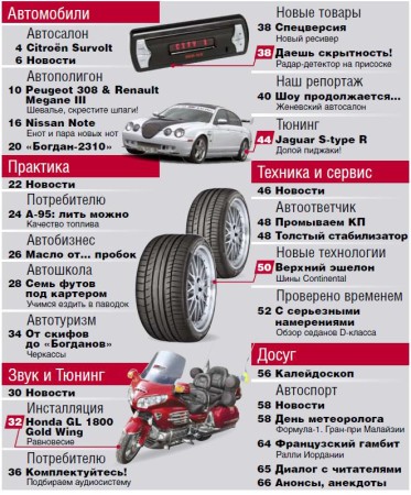 Еженедельное издание, полностью посвященное миру автомобилей. В издании представлено максимум информации о автомобилях и не только. Основные рубрики журнала: Автосалон, Автополигон, Концепции, Авторынок, Автобизнес, События и выставки, Практические технические и юридические советы, Спорт и другое.