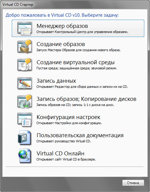 Основные функции Virtual CD: