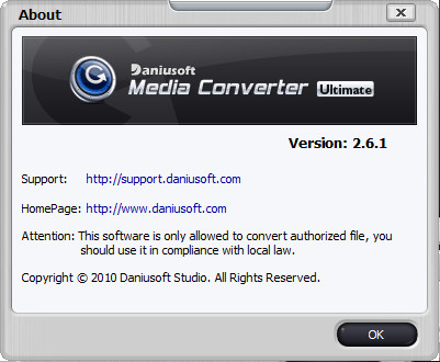 Daniusoft Media Converter Ultimate - мощная программа для конвертации обычных медиа файлов и файлов, защищенных механизмом DRM. Вы сможете конвертировать защищенные WMA, WMV, ASF файлы в обычные аудио/видео файлы: WMA, M4A, AAC, AC3, WAV, MP3, WMV, ASF в MP3, WAV, AAC, MP4, AVI, FLV, 3GP и т.д. С помощью конвертера вы сможете убрать защиту DRM и конвертировать аудио/видео файлы, чтобы проигрывать их на переносных устройствах, таких как iPod, PSP, Zune, Creative Zen, Archos, мобильных телефонах и т.д.