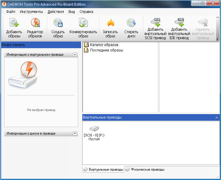DAEMON Tools Pro Advanced Edition - программа для эмуляции виртуального привода на операционных системах Windows 2000/XP/Vista (поддерживаются как 32- так и 64-bit системы). Программа устанавливает в систему специальный драйвер, благодаря которому Windows определяет виртуальный привод и может с ним работать, как с обычным. Разница состоит лишь в том, что вместо настоящих лазерных дисков используются файлы образов CD и DVD-носителей. DAEMON Tools работает через меню в системном трее, при помощи которого вы получаете доступ ко всем её командам.