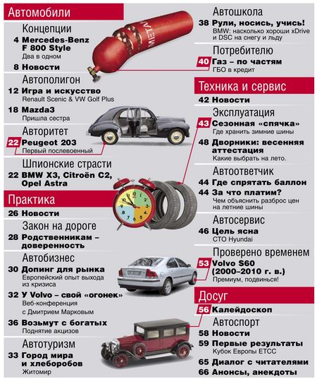 Еженедельное издание, полностью посвященное миру автомобилей. В издании представлено максимум информации о автомобилях и не только. Основные рубрики журнала: Автосалон, Автополигон, Концепции, Авторынок, Автобизнес, События и выставки, Практические технические и юридические советы, Спорт и другое.