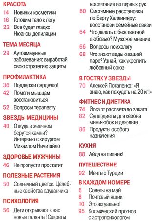 Популярный журнал о здоровье и здоровом способе жизни! В каждом номере журнала - советы, рекомендации специалистов, реальные истории исцеления людей, полезные диеты, упражнения для поддержания идеальной формы, конкурсы и подарки и многое другое. Быть здоровой просто!