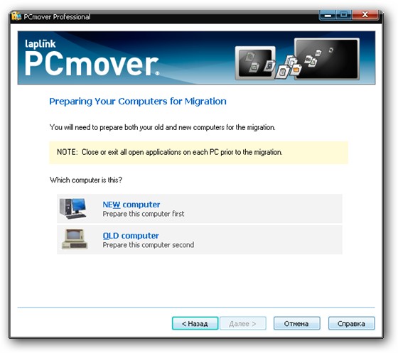 PCmover - удобное програмное обеспечение, которое позволяет переносить программы, файлы и установки с Вашего старого компьютера на новый компьютер. Просто установите предлагаемую программу PCmover на обоих компьютерах - старом и новом и запускайте ее! PCmover определит какие программы, файлы и установки нужно перенести, а по окончании процесса, Ваш новый компьютер будет иметь все функции Вашего старого компьютера плюс новые программы, которые на нем были установлены заранее.