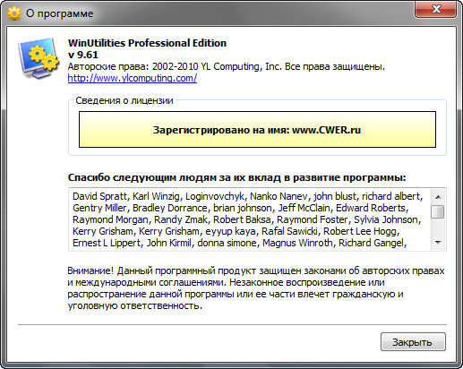 Скачать программу WinUtilities Pro 9.61 Rus (7,56 МБ):