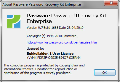 Passware Kit Enterprise - набор инструментов для подбора или определения паролей к файлам (более 100 видов), созданными самыми известными в мире программами: Office, Excel, Word, Windows XP/2000/NT, Access, Outlook, Outlook Express, Exchange, WinZip PKZip ZIP, WinRAR RAR, VBA Visual Basic modules, Internet Explorer/ EFS - Encrypted File System, FileMaker/ Acrobat, Quicken, QuickBooks, Lotus 1-2-3, Lotus Notes, Lotus, Organizer, Lotus WordPro, Quattro Pro, Backup, Project, MYOB, Peachtree, Paradox, ACT!, Mail, Schedule+, Money, WordPerfect и MS Office 2007, а также определения ключа Windows XP/2000/NT/7.