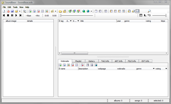 Soundbase - универсальная программа для проигрывания и сортировки музыкальных файлов. Soundbase содержит аудио плеер, средства для сортировки и поиска музыкальных альбомов и файлов, а также мощный инструмент для добавления и редактирования метаданных разных аудио форматов.