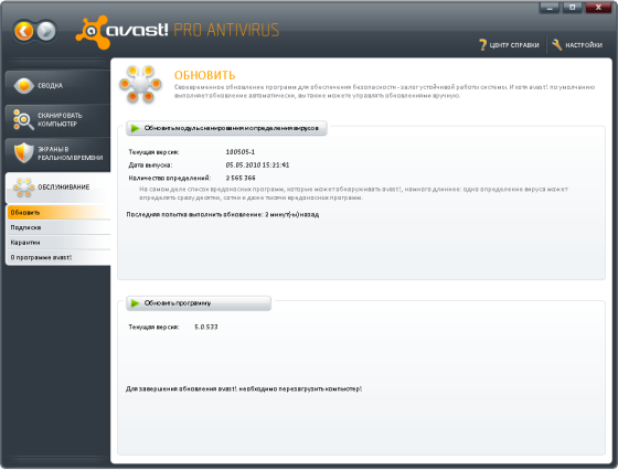 Скачать программу Avast! Pro 5.0.533 Final (46,97 МБ):