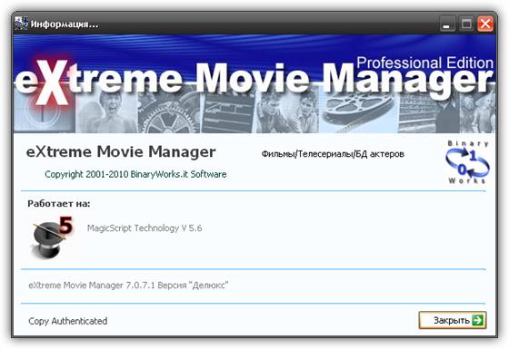 Скачать программу eXtreme Movie Manager 7.0.7.1 Deluxe Edition (40,3 МБ):