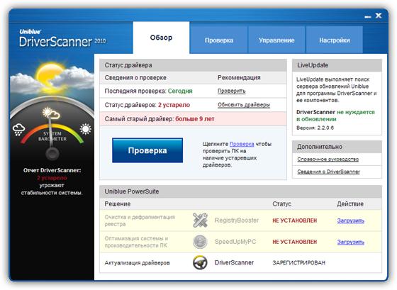 Попробывал 2 программы Uniblue PowerSuite 2010 Build 2.1.2.7 и Uniblue DriverScanner 2010 v2.2.0.6 от одного