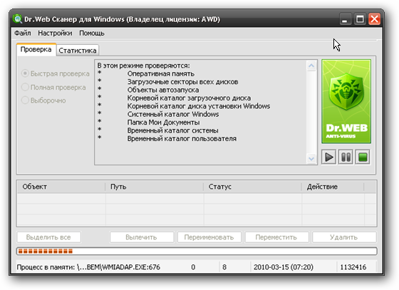 - Быстрая и максимально тщательная проверка оперативной памяти, загрузочных секторов, жестких дисков и сменных носителей