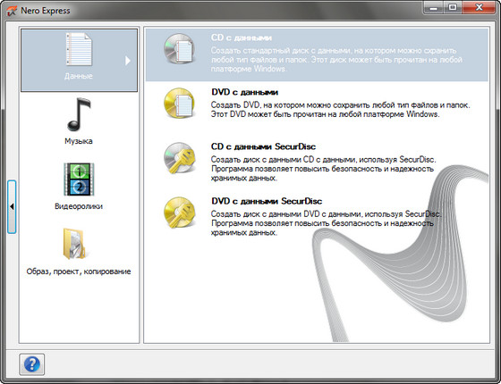 Резервное копирование с помощью Nero BackItUp & Burn: