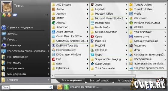 - Благодаря Vista Start Menu для запуска какой-либо программы вам достаточно зайти в меню и кликнуть по необходимой иконке. Если же вам нужны сопутствующие файлы, установленные вместе с программой, то вам достаточно подвести курсор к иконке и появится подменю, в котором вы сможете найти необходимое.