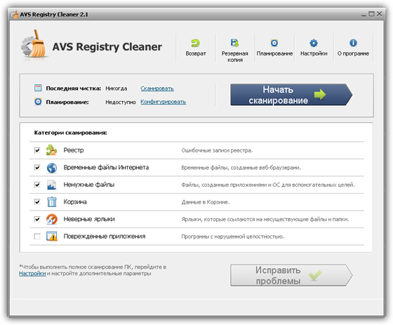 Пользуясь AVS Registry Cleaner, Вы можете: