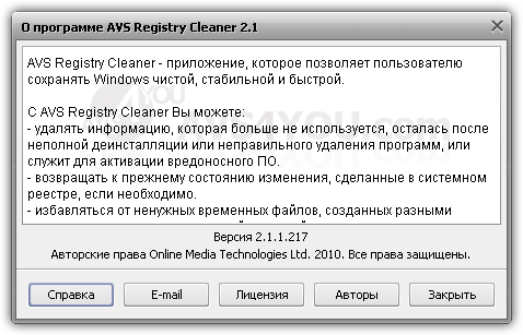 Скачать программу AVS Registry Cleaner 2.1.1.217 (17,1 МБ):
