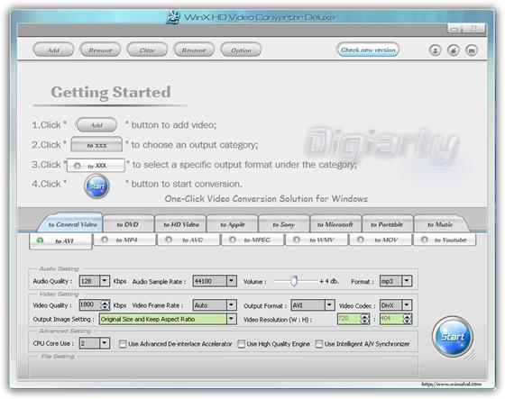 WinX HD Video Converter Deluxe поддерживает многоядерные процессоры, имеет передовым ускорителем чересстрочной развертки и использует двигатель высокого качества для повышения качества вывода видео.