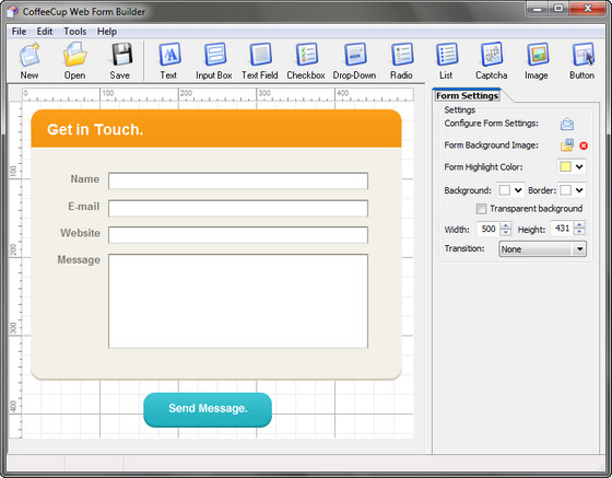 CoffeeCup Flash Form Builder is a drag and drop application that creates the most unbelievable Web Forms you have ever seen. Add Input Boxes, Text Areas, Lists, Drop Down Boxes, Check Boxes, Radio Buttons and more.