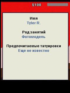 В этой мобильной игре вы сможете создать свой собственный тату-салон и принести ему небывалую известность своим творчеством! К вам будут заглядывать как мировые звезды, так и обычные подростки. Оставь свою неповторимую татушку на каждой красивой девчонке. Размер экрана: 128x160, 176x204, 176x208, 176x220, 240x299, 240x320, 320х240, 240x432, 360x640.