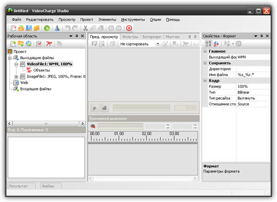 Videocharge Studio - приложение предназначенное для создания видео, оптимизированного для просмотра в Интернете. С помощью этой программы Вы сможете создавать видео-галереи (YouTube видео), графические галереи, закачивать видео на FTP, защищать видеофайлы с помощью "водяных знаков", редактировать видео. Программа поддерживает работу со всеми форматами, умеет работать с DVD, оптимизирована для обработки множества файлов за один проход, работает через командную строку. Позволяет использовать двойной проход при кодировании видео.
