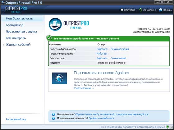 Скачать программу Outpost Firewall Pro 7.0 (3371.514.1232) 32-Bit (27.99 МБ):
