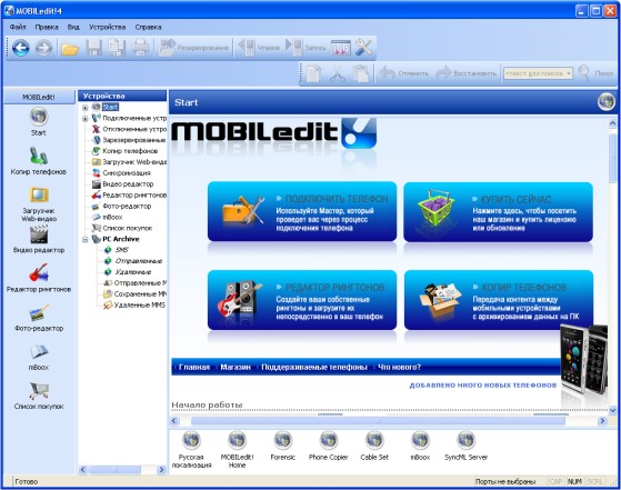 Программа поддерживает очень большое количество моделей мобильных телефонов. Список функциональных возможностей постоянно расширяется за счет добавления новых подключаемых модулей и включения драйверов поддержки новых моделей телефонов.