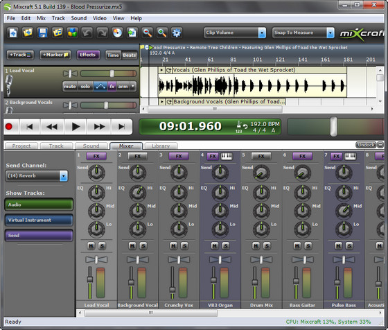 Acoustica Mixcraft - многодорожечное звуковое программное обеспечение с большим количеством эффектов (Переконверт, Задержка, Компрессор, Flanger и Хор), так же резонансные фильтры и мощной редактор дорожек. Высокая эффективность порадует вас, разгон 32 бита со студийным качеством, поддержка файлов WAV и даже импортируемых сжатых MP3, OGG, WMA файлов. Удобен для записи собственной музыки, к примеру, дорожек музыки или соединять разные файлы в один.