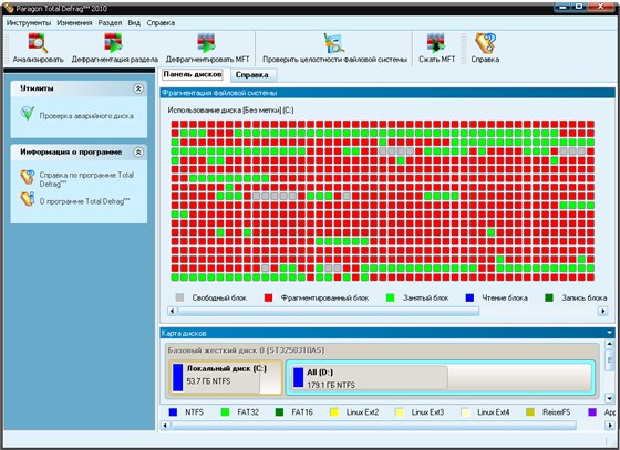 - Запуск Paragon Total Defrag 2010 без установки. Возможность создать загрузочный CD или DVD, загрузить систему и прямо с CD/DVD осуществлять дефрагментацию всех имеющихся дисков.