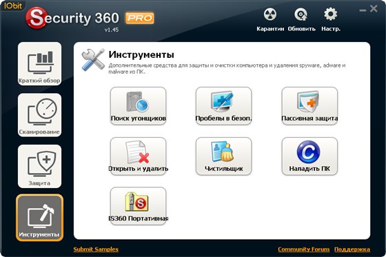 IObit Security 360 - утилита предназначена для удаления шпионских программ и вредоносного ПО, которая обнаруживает, удаляет и защищает ваш компьютер от различных потенциальных шпионов, рекламное ПО, трояны, клавиатурных шпионов, ботов, червей, и угонщиков.