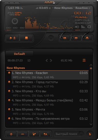AIMP - программа, которая разрабатывалась как аналог всем известного медиаплеера Winamp. На данный момент программа включает в себя множество дополнительных модулей: CD-Ripper, Tag Editor, Audio-player, аудио конвертер, запись аудио и дисков с данными и многое другое. AIMP заменяет множество программ, благодаря чему теперь не нужно искать специальный софт, скажем, для перегона Audio-CD в MP3 - это уже предусмотрено в AIMP. Программа позволяет воспроизводить без плагинов множество форматов, включая WAV, MP3, MP2, MP1, OGG, WMA, UMX и многие другие. Интерфейс программы выглядит очень стильно, а также имеет многоязычную поддержку, включая русский язык.