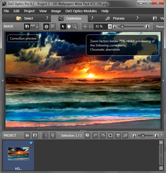DxO Optics Pro - профессиональная программа для улучшения и корректировки вашей коллекции цифровых фотографий. Данное решение обладает многими прогрессивными технологиями, с помощью которых можно отрегулировать яркость, контрастность, цветовой баланс, устранить искажения и повысить четкость изображений, исправить цвета и экспозицию по краям и в углах фотографии, отрегулировать баланс белого цвета с учётом цветовой температуры и многое другое. Принцип работы DxO Optics основывается на проектах. Вы загружаете набор фотографий с жесткого диска, flash-карты или любого другого носителя, после чего систематизируете материал, описываете необходимые корректировки. После окончания работы над фотографиями запускается процесс экспорта документов. Кроме того, DxO Optics Pro может быть подключен в качестве плагина к графическому редактору Adobe Photoshop.