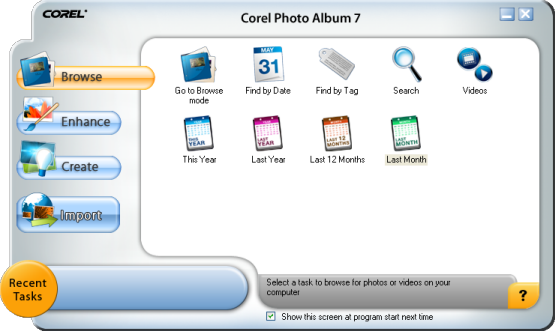 Corel Photo Album автоматически обнаруживает все фотографии, хранящиеся на компьютере пользователя, и сортирует их по дате снимка.