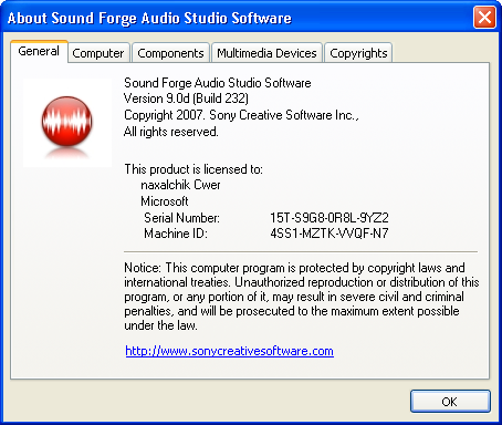 Скачать программу Sony Sound Forge Audio Studio 9.0d Build 232 (47,49 МБ):