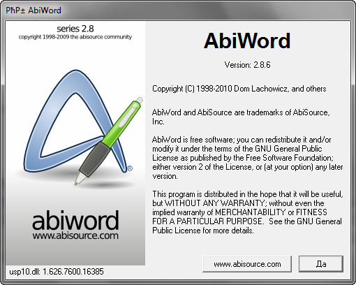 Скачать программу AbiWord 2.8.6 Final (7,95 МБ):