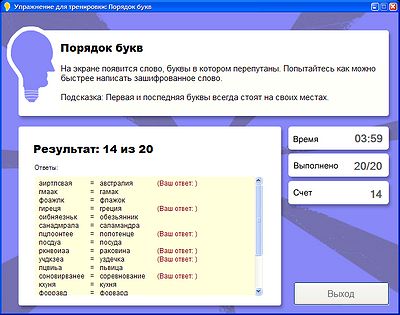 Программа "Развивай свой интеллект" - это трехуровневый курс по улучшению памяти и повышению IQ. Она адресована тем, кто желает развить концентрацию внимания и выработать быструю реакцию. Пользователь может выполнять отдельные упражнения либо пройти полный курс, состоящий из ежедневных занятий.