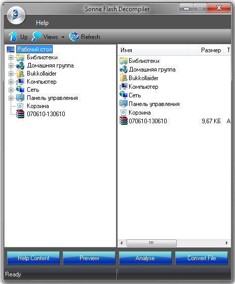 Sonne Flash Decompiler - мощная программа для флеш, позволяющая преобразовывать файлы между форматами SWF и EXE, а также позволяющая редактировать ролики в формате SWF. С помощью данной программы вы сможете редактировать текст, шрифты, картинки, звуки, формы, сценарии и другие элементы, находящиеся в флеш - файле.