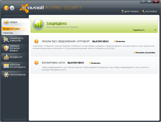 - Фаервол. Пакет avast! Internet Security включает полностью интегрированный фаервол, управлять которым можно прямо из пользовательского интерфейса avast!. Фаервол отслеживает весь обмен информацией между вашим компьютером и внешним миром и блокирует неразрешенные действия, руководствуясь правилами "Разрешить" и "Запретить". Таким образом брандмауэр предотвращает утечку уязвимых данных с вашего компьютера, а также блокирует попытки взлома вашей системы со стороны интернет-хакеров.