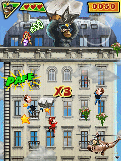 Король горилл больше всего любит красивых девушек, совсем как его дальний предок Кинг-Конг, и ни за что не даст их в обиду. Как назло, злодеи, обосновавшиеся в крупных городах мира, таких как Нью-Йорк, Лондон и Москва, задумали похитить всех красавиц в мире. Король в ярости и готов сразиться со всеми, кто встанет у него на пути. Взбирайтесь на многоэтажные небоскребы и сбрасывайте увесистыми булыжниками всех карабкающихся по стенам «спасителей» девушек, на деле являющихся прихвостнями главных злодеев. Отправляйте вниз полицейских, пожарных, спецназовцев и солдат, собирайте бонусы, которые помогут вам в борьбе с врагами, и готовьтесь к финальным сражениям с главарями злодеев. Размеры экранов: 128x160, 240x320, 360x640.