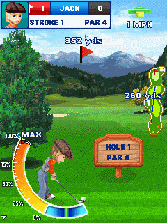 Качественный симулятор гольфа, особенностью которого является красивая 3D графика, возможность настройки четырёх 3D персонажей, а также доступен аркадный режим игры, который состоит из 72 разных лунок на четырёх различных ландшафтах. Кроме того, можно выполнять удар по мячику для гольфа в двух режимах: в простом и в продвинутом, который обеспечивает лучшую точность. Размеры экранов: 128x128, 128x160, 176x208, 176x220, 208x208, 240x320, 320x240, 352x416, 360x640.