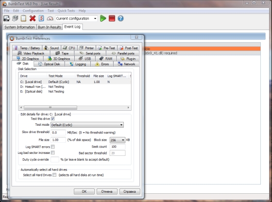 BurnInTest Professional - профессиональная версия программы для всестороннего и детального тестирования компонентов компьютера. Утилита тестирует скорость процессора, оперативную память, жесткие диски, CD/DVD приводы, звуковые карты, видеокарты, принтеры, сетевые соединения. BurnInTest Professional также может проводить тестирование последовательных (до 12 портов одновременно) и параллельных портов, портов USB (до 10 портов одновременно). Также в профессиональной версии имеются дополнительные параметры тестирования процессоров и видеокарт. После тестирования программа выдает отчет с найденными ошибками и нестабильностями. Идеально подходит для любителей разгона.