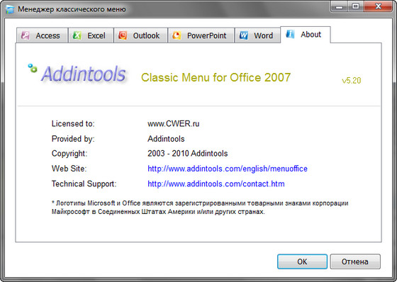 Скачать программу Classic Menu for Office 2007 v5.20 (3,18 МБ):